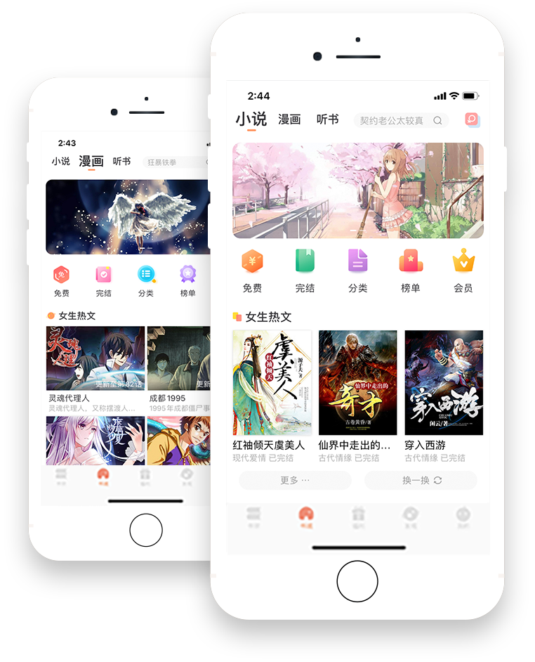海量精彩小说、漫画、听书内容